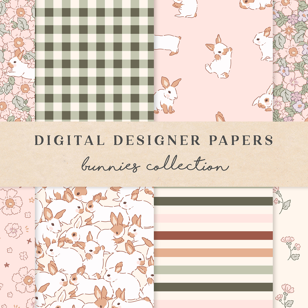 Set of 8 High Quality Bunnies Seamless Patterns Collection